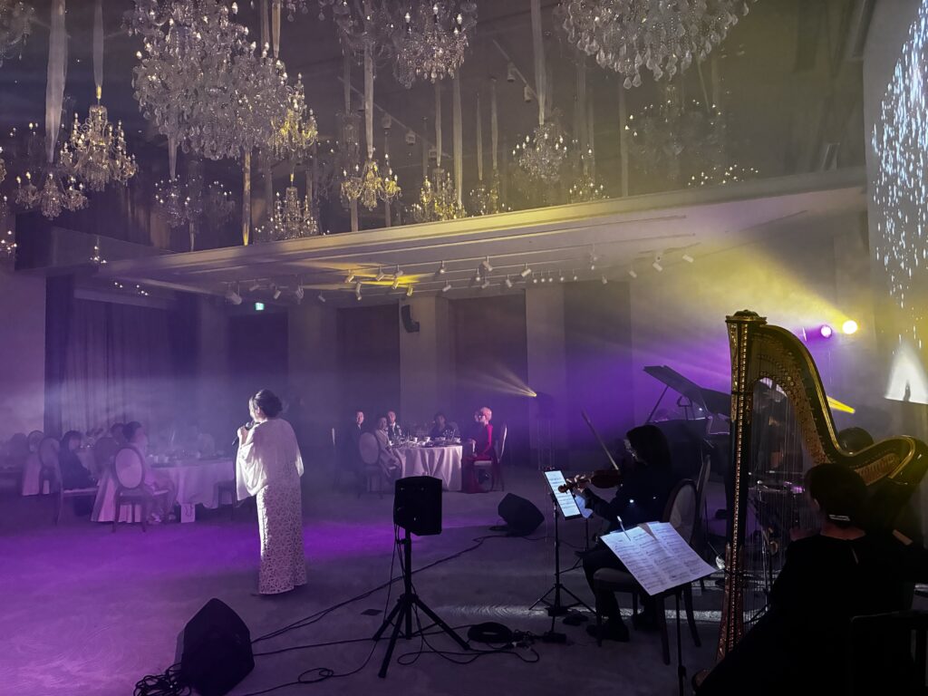 以前イベントでご一緒したDuoRefreのピアニスト長井美香さんのご紹介で、ストリングスホテルで行われた還暦パーティーのMCを務めました。